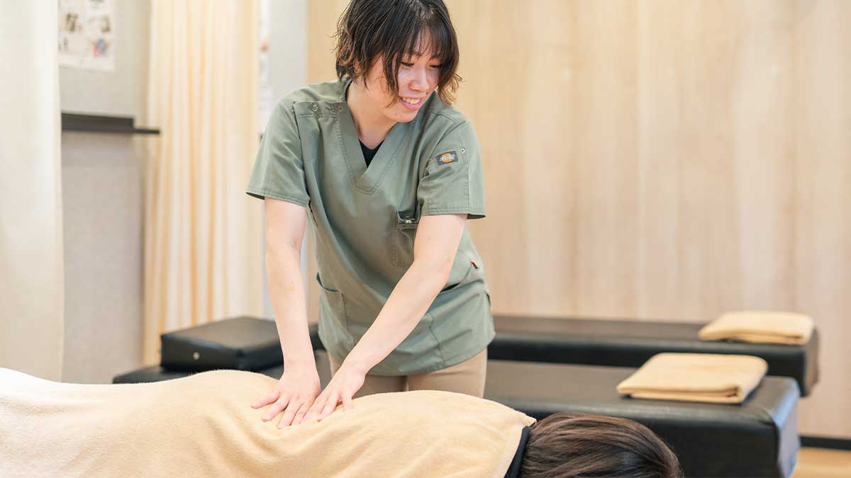 実際に触れてみると、ご本人が思っている以上に背中や首がこわばっているケースが多いです。